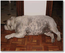 Los perros con enfermedad de la piel desarrollan una respuesta inmunológica a la inhalación de partículas como el polvo doméstico, hongos y polen. Esta forma común de alergia por lo general comienza a una edad relativamente joven. En raras ocasiones, los perros pueden ser alérgicos a los productos químicos contenidos en los jabones, ceras, las alfombras y los collares antipulgas. Este tipo de hipersensibilidad se conoce como una “alergia de contacto.” Además, algunos perros son alérgicos a las picaduras de insectos. Las Alergias a los alimentos por lo general se manifiestan con problemas de diarrea y/o lesiones cutáneas.
